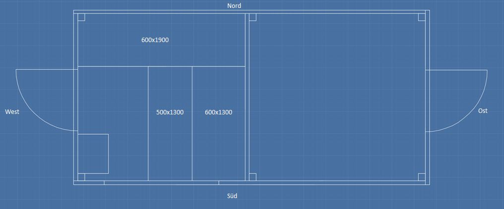 Das Gebäude soll also ca 4m breit und 2m tief werden. Links die Sauna, rechts der Geräteraum in der Mitte also ein Trennwand. Die Sauna soll von links betreten werden und nach Süden (auf der Zeichnung unten), ein längliches Fenster haben. Das Gerätehaus soll von rechts betreten werden. Wir sind auf Eure Meinung du der Aufteilung gespannt.
