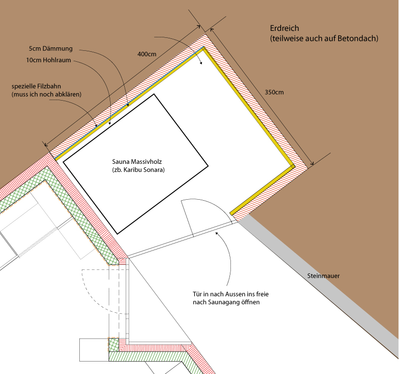 also wäre es sinnvoll die Betonwände und die Betondecke innen noch zusätlich zu dämmen? und dann noch die 10cm Abstand von der Dämmung zur Massivholzsauna?